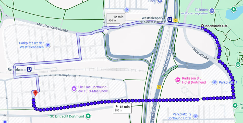 Mit dem Auto stehen Euch die Parkplätze an der Florianstraße zur Verfügung. Da es dort nicht allzu viele gibt, besteht die Möglichkeit, gegenüber der Signal-Iduna zu parken. Alternativ vor dem TSC Eintracht an der Victor-Toyka-Straße.